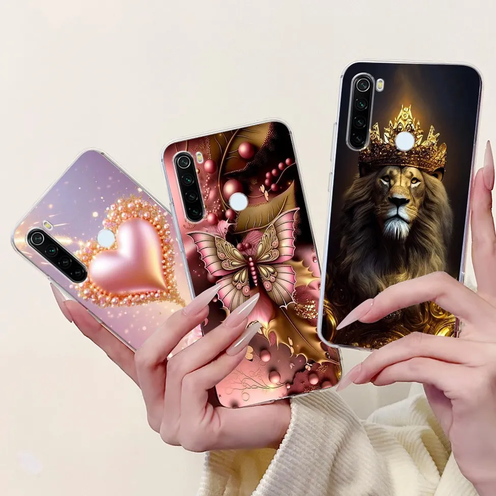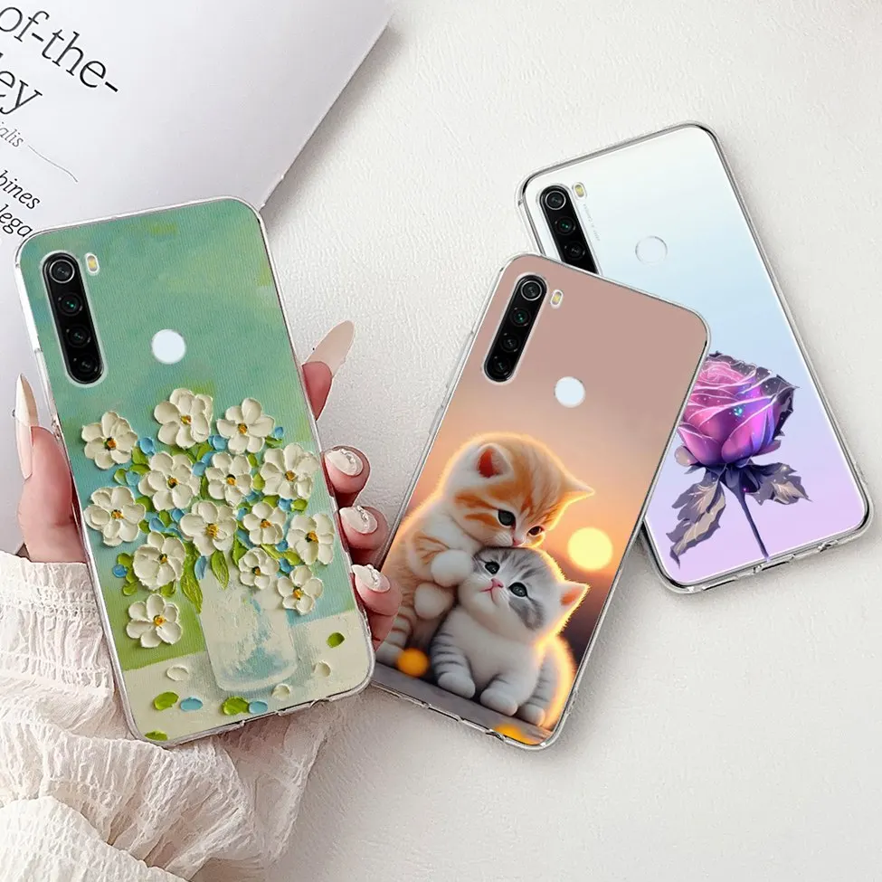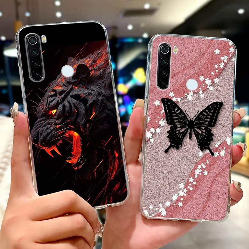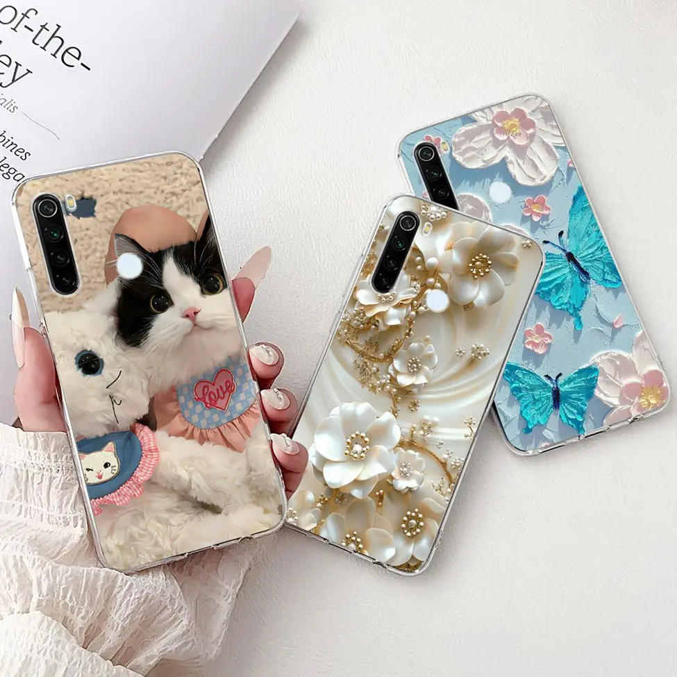 For Redmi Note 8 Case Transparent Fashion Butterfly Flower Cute Cat Love Soft Cover For Xiaomi Redmi Note 8 Phone Case M1908C3JH